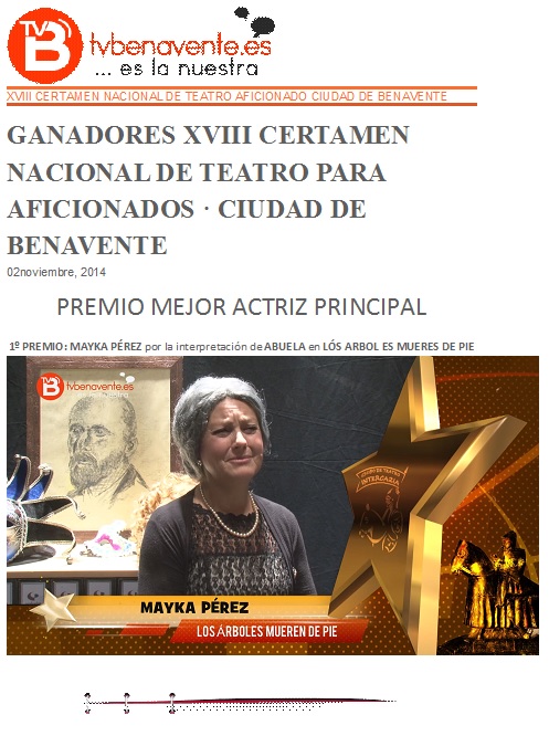 - Premio XVIII Certamen Nacional de Teatro para Aficionados Ciudad de Benavente, mejor actriz principal: Mayka Pérez.