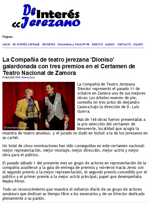 - Premio XVIII Certamen Nacional de Teatro para Aficionados Ciudad de Benavente, segundo premio a mejor representación.